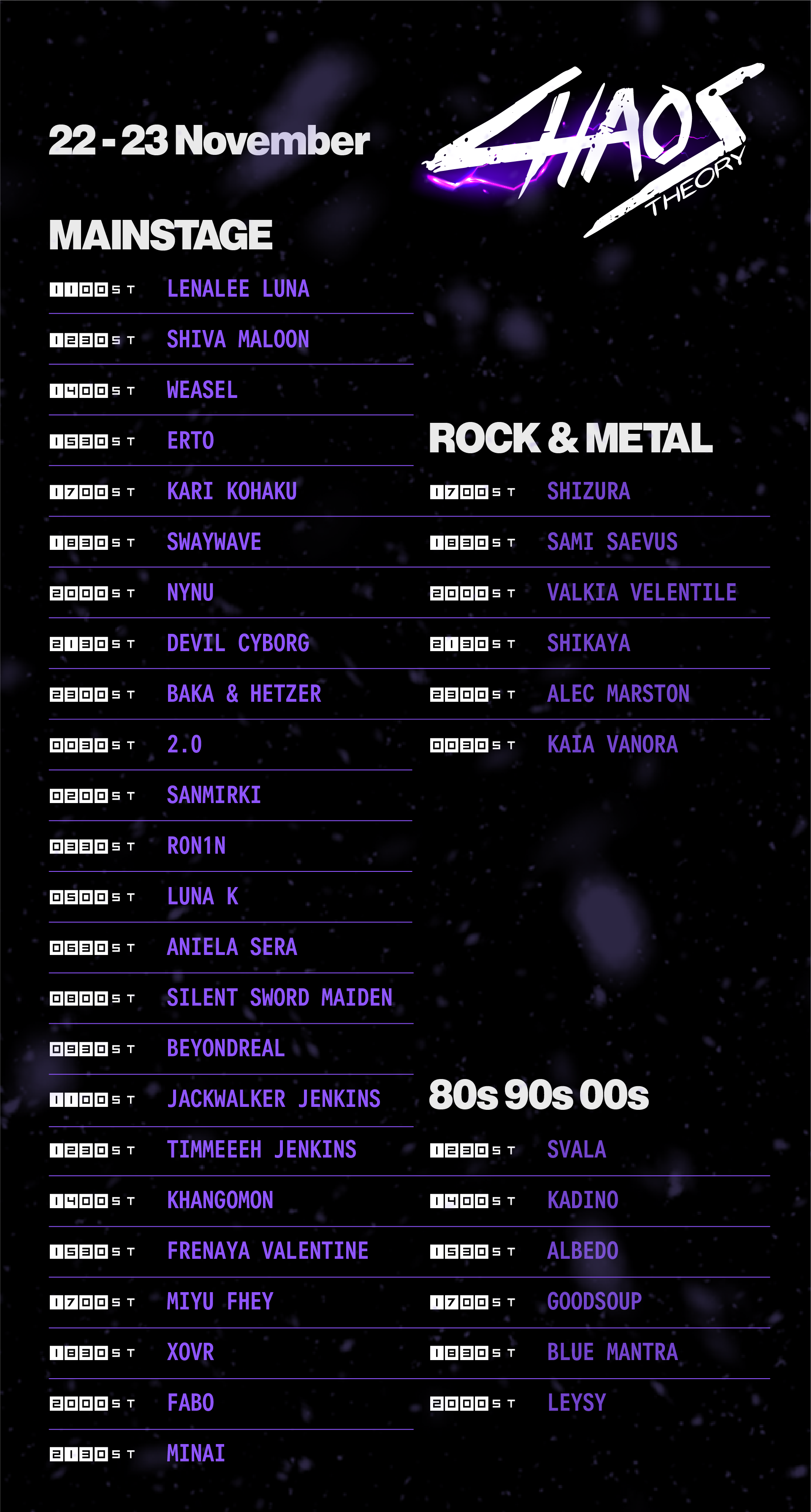 The goal behind Chaos Theory is to create a community full of likeminded people that want to enjoy their time in Eorzea and even outside of it. Said community focusses a lot on the clubbing community in Final Fantasy, but widens it's horizon more and more with regular ingame events, giveaways and contests. While a lot of people don't see the issues we face in the Final Fantasy XIV clubbing scene, we sure do. A lot nowadays focus on becoming the best without thinking about having fun and supporting each other in the virtual world we all love to spend so much time in. For us, it's important to give everyone a chance. We're all in this together after all. Important for us is that the community should not split - it should come together and share one goal: to make the best out of the game and enjoy it as much as possible. We play together, we party together, we vibe together - united as one