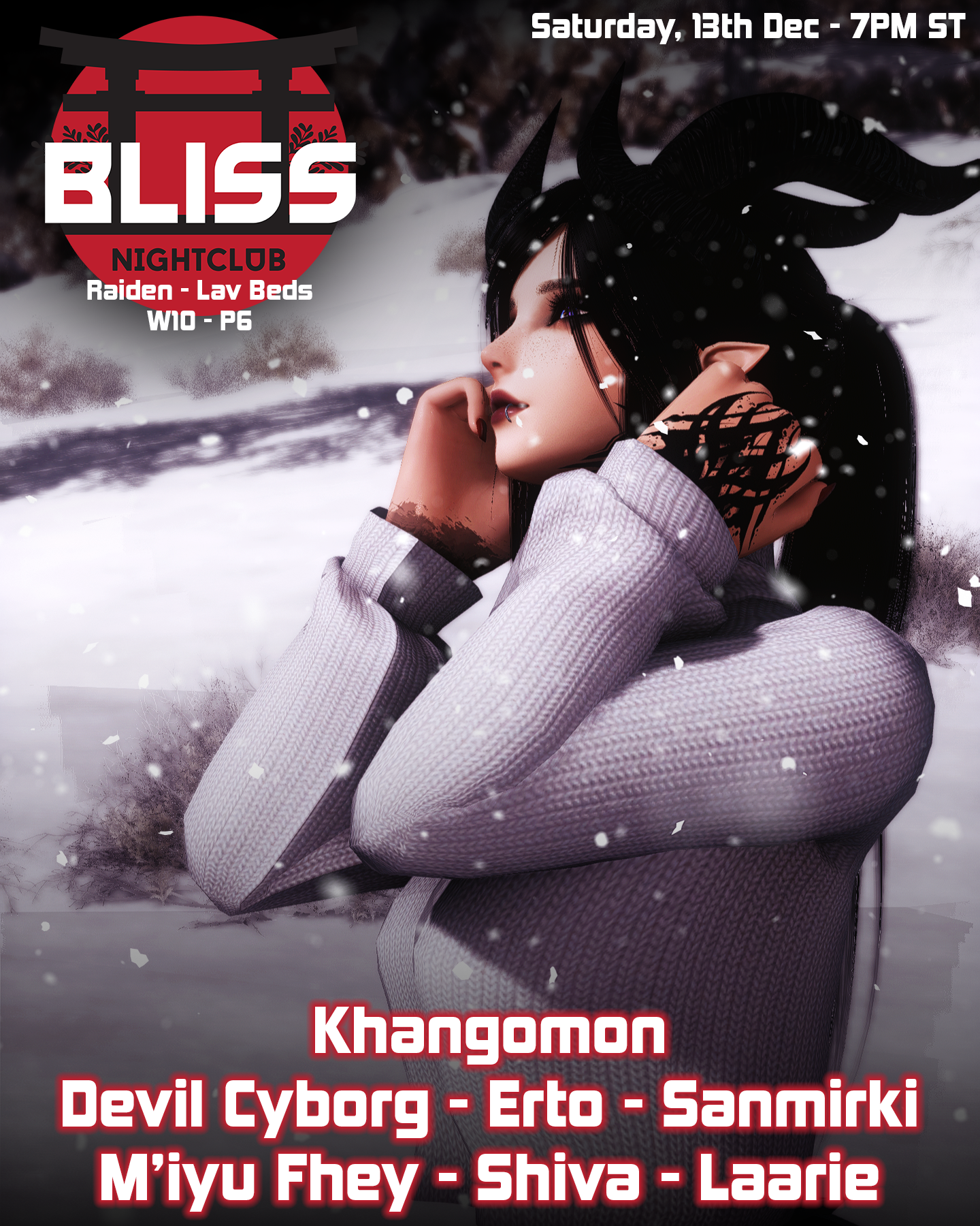 Event Date: Saturday 13th DecemberLocation: Light | Raiden | Lavender Beds | Ward 10 | Plot 6👗Dress Code: Wintery/Seasonal