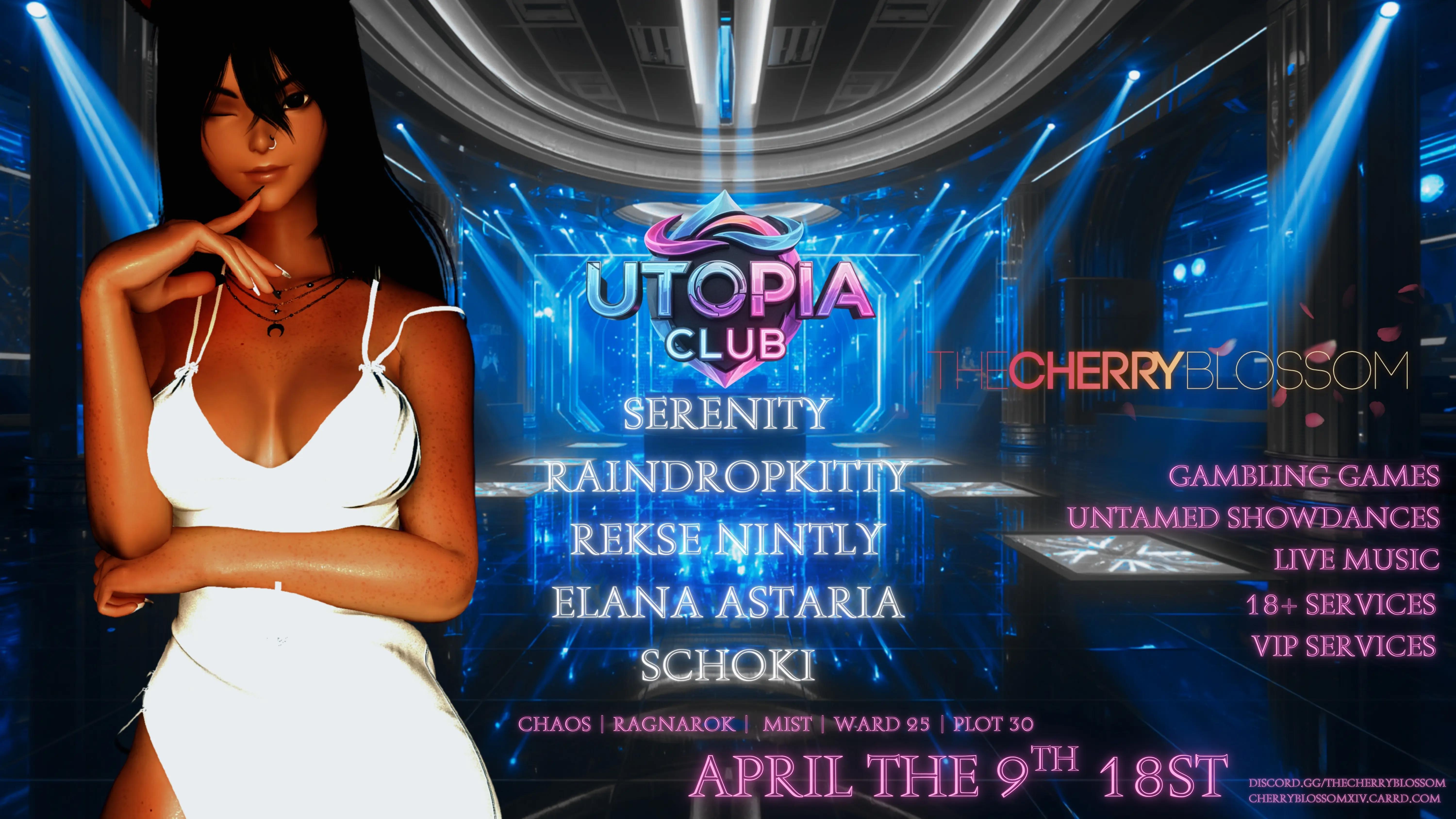 The Cherry Blossom is Chaos's finest adult nightclub and hotspot for 18+ entertainment. We offer a wide selection of NSFW talent as well as drinks, exciting dj's lineups and some of the most unique gambling on Chaos! Come on by and say hello, we promise you'll love it! We open at 19:00 ST on Thursdays, and 19:00 ST on Saturdays. During summer we anticipate both opening and closing by one hour. The Venue is located at (Cerberus) Lavender Beds- Ward 16 - Plot 6.
